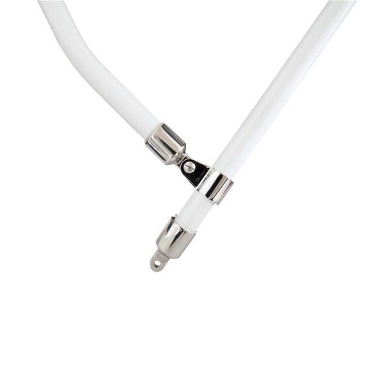 Opvouwbare stangen (Ø 25 mm) van een witte aluminium-magnesium-mangaanlegering. De bimini heeft 3 verstevigingsbogen. Voor een betere hantering kan de kap ook worden gedemonteerd.