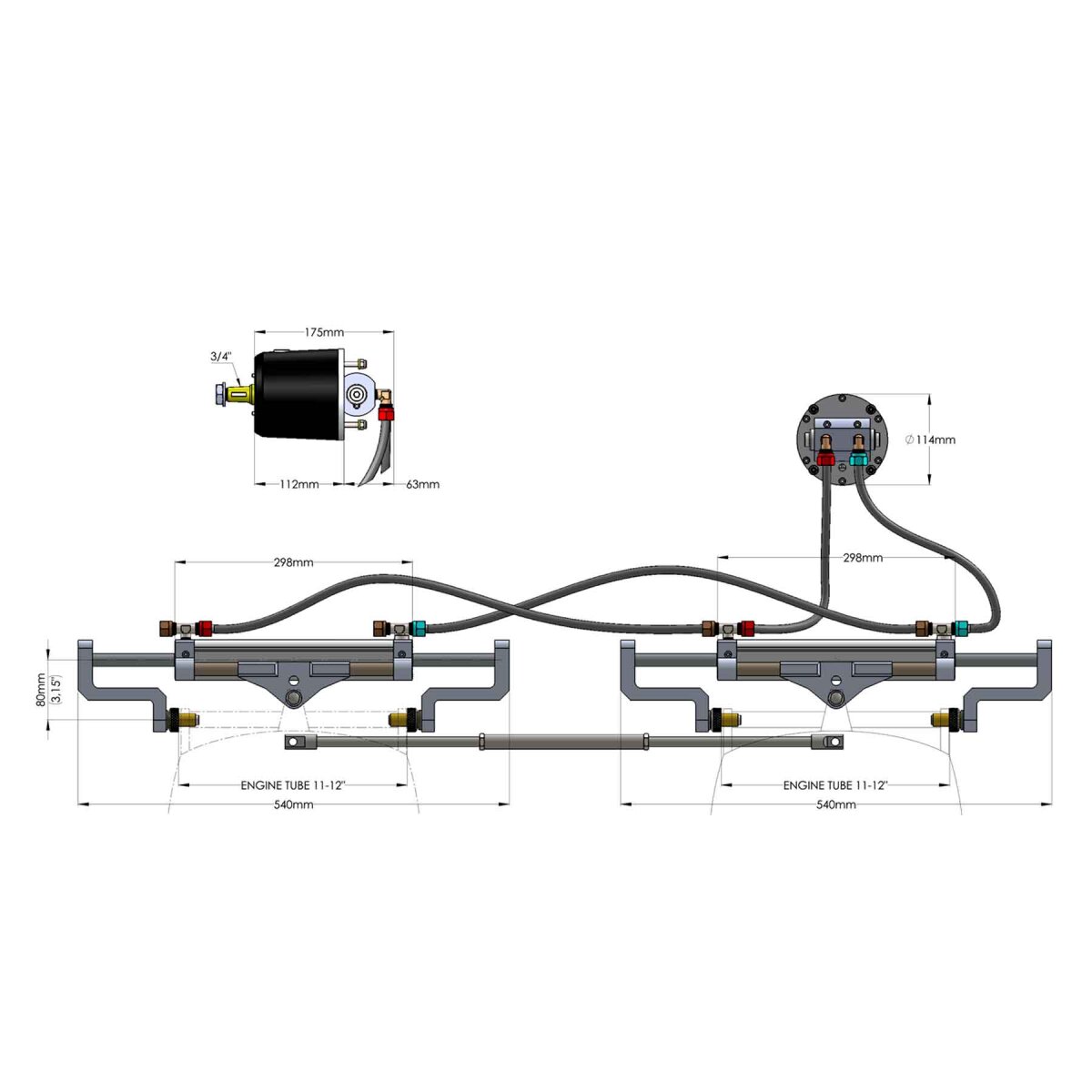 HYDRODRIVE - Hydraulische besturing MF255WTS-TDF voor buitenboordmotoren tot 2x200 pk (dubbele motor)