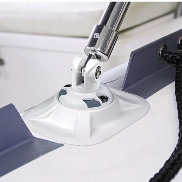 With the RAILBLAZA Clevis/Bimini support pair and you can now click in and out of any StarPort mount. Great when you need to remove the bimini cover for those days that the casting area needs to be clear.