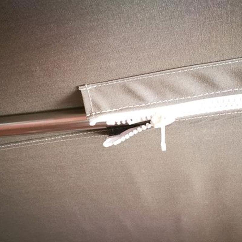 Dankzij de ritsen kan de stof gemakkelijk van het frame worden verwijderd en weer worden aangebracht om te worden gereinigd en geïmpregneerd.