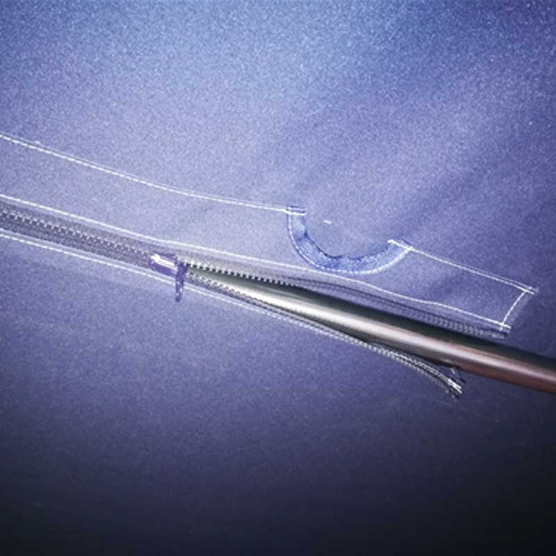 De YKK-ritsen (geproduceerd in Duitsland) worden overal waar de dwarsbalken / bogen op de bimini-top zitten in de kapstof genaaid.